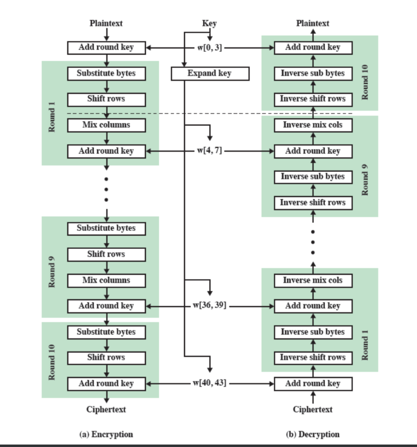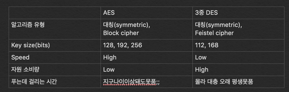 - 암호화 Key로 128, 192, 256bit를 가질 수 있다. (AES-128, AES-192, AES-256)