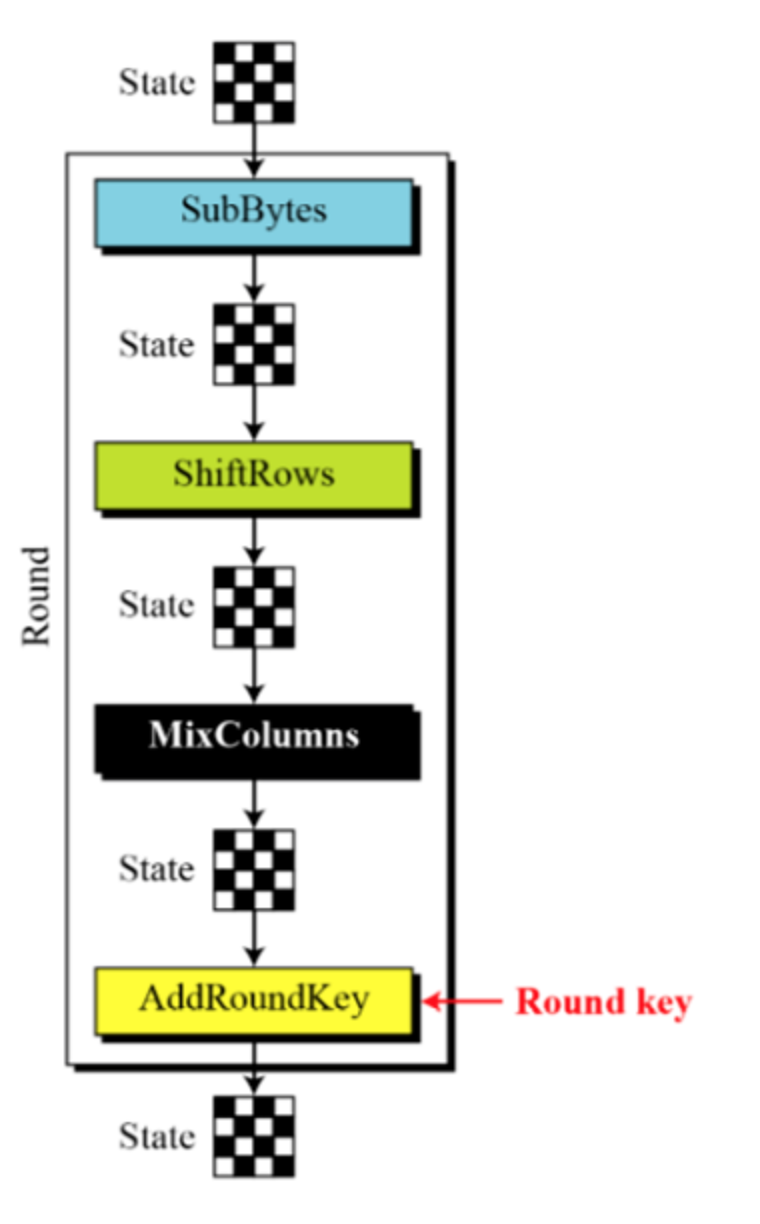 - 위에서 각 State 는 128bit, 16byte(16*8bit)를 사용하여 암호화를 진행한다