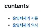 괄호 안에는 보여질 목차를 써주고, 대괄호 안에는 아래글로존재하는