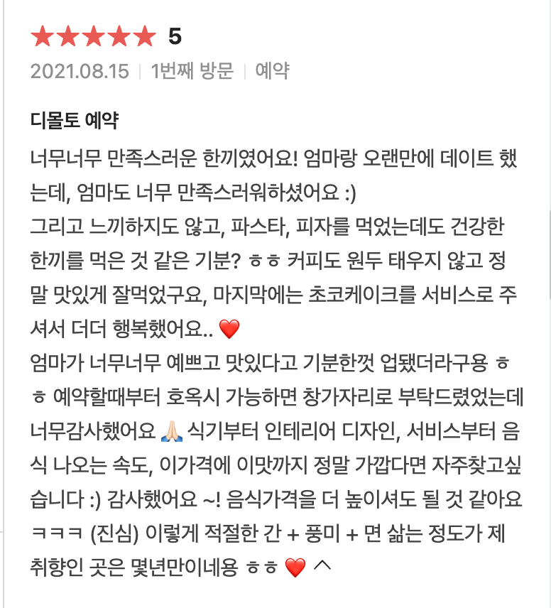 가격도 너무 저렴해서, 네이버 리뷰에 가격 올리셔도될거같다고 씀ㅋㅋㅋㅋㅋㅋㅋㅋㅋㅋㅋㅋㅋㅋㅋㅋㅋㅋ 진심.. 와인까지 함께하고싶지만 차타지않으면 못가는게 한이다.. 아무튼 생면 파스타 좋아하시는분들 진짜 강강강추요