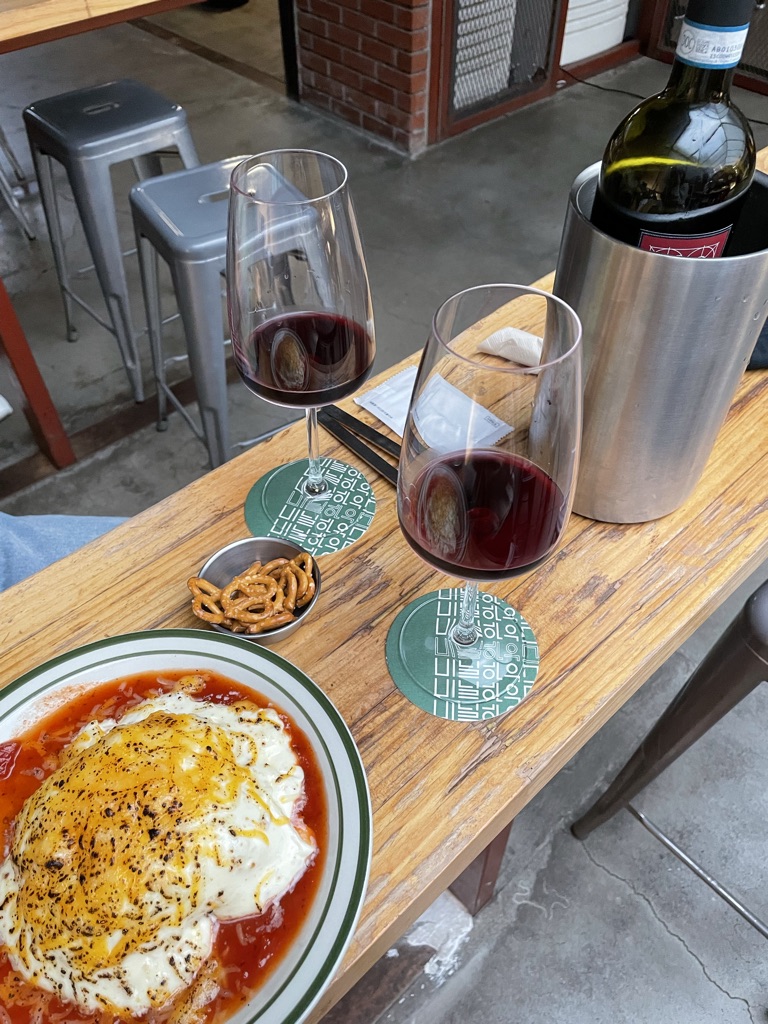 사회적 거리두기 하는 식당을 찾으려고 열심히 사람없는 동네인 문래로, 그중에서도 내추럴와인을 구경하고싶어서 택한곳.
