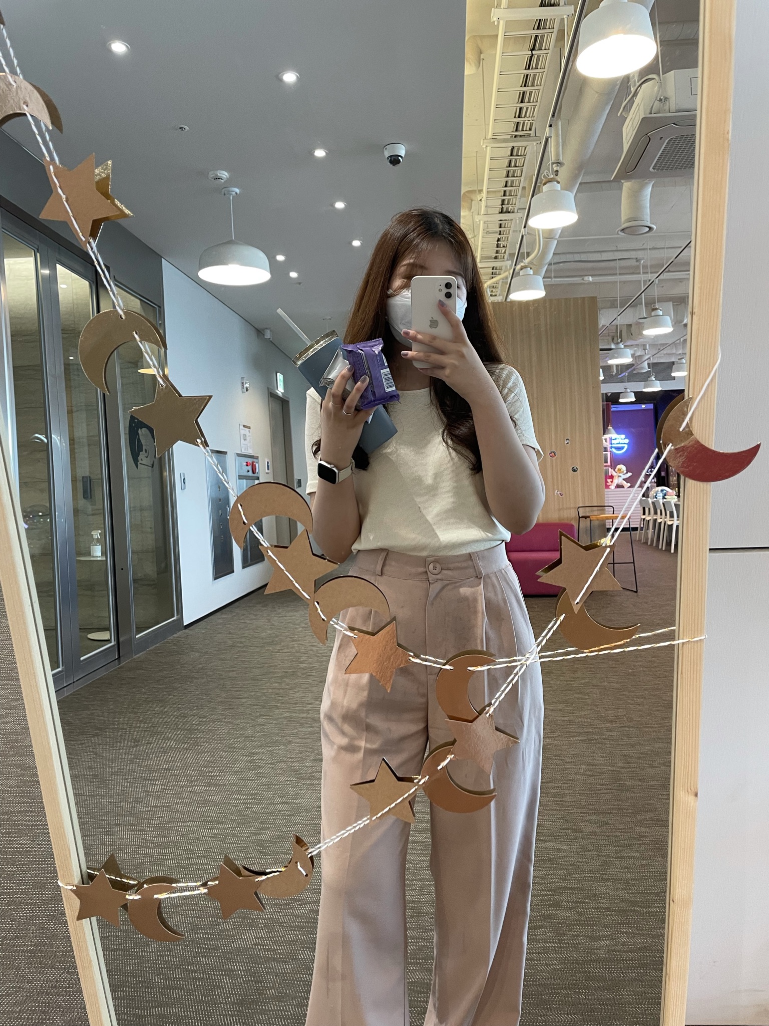 가끔 회사가면 거울샷도 찍어주고. 간식과 커피... 필수.