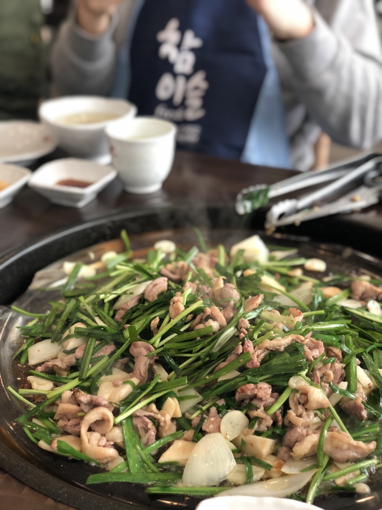 사당부추삼겹살이 달달해서 중독성있다면 이곳은 그냥 부추가 중독성 그자체에여.